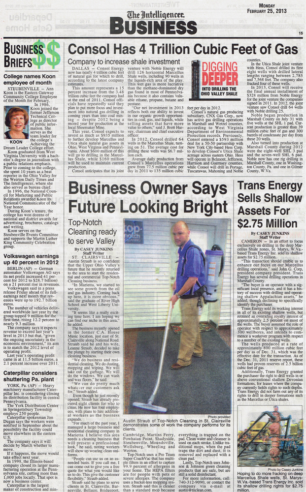 Wheeling Intelligencer Published February 25, 2013 at 621 × 1000 in Top Notch in the business section of the Wheeling Intelligencer!