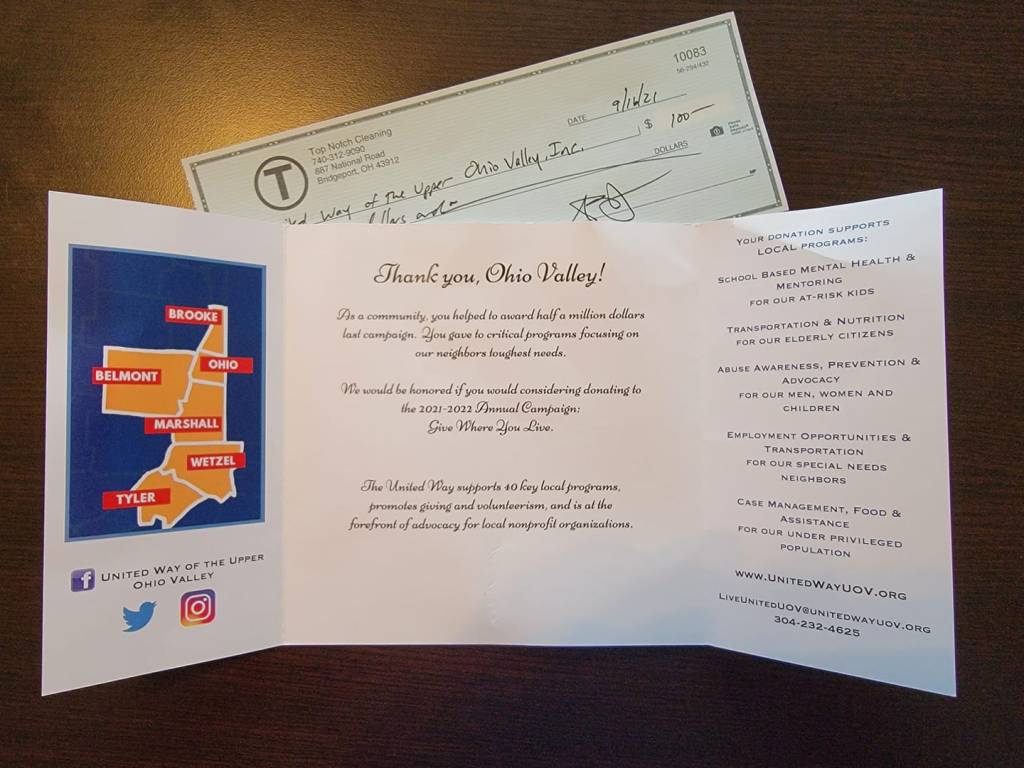 We are proud to make a donation to the United Way of the Upper Ohio Valley.