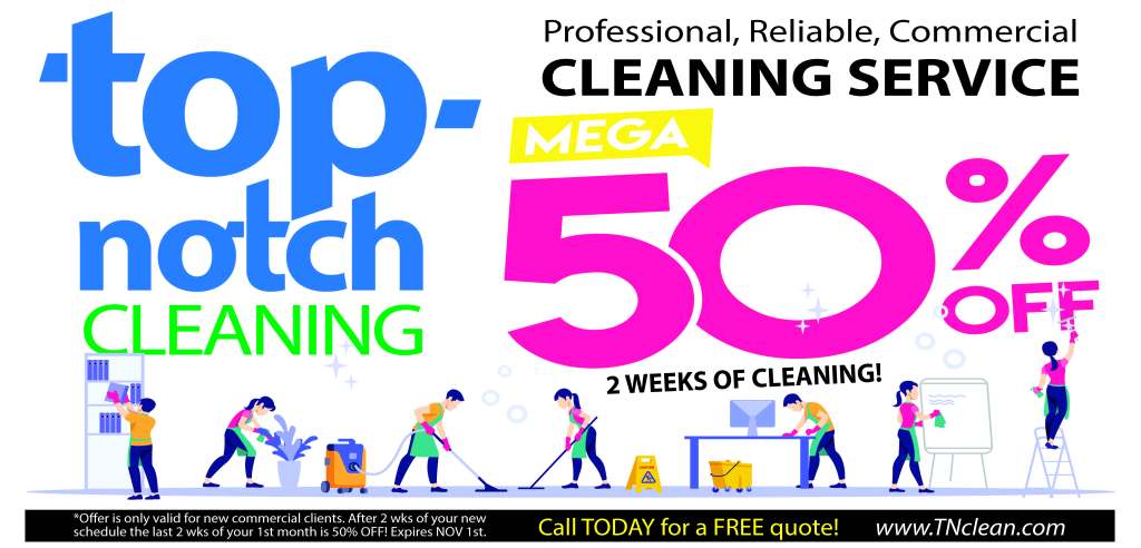 MEGA SALE! by Austin StraubSeptember 3, 2022 COMMERCIAL CLEANING MEGA SALE!Limited time offer of 50% OFF for two weeks. *Offer is only valid for new commercial clients. After 2 weeks of your new schedule the last 2 weeks of your 1st month is 50% OFF!Expires NOV 1st. Share this: Share on Facebook (Opens in new window) Facebook Share on X (Opens in new window) X Email a link to a friend (Opens in new window) Email Print (Opens in new window) Print Like Loading... Related
