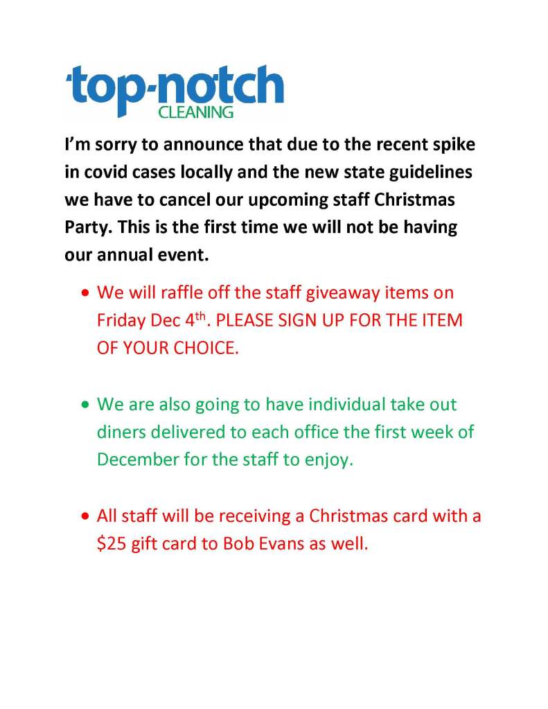 Christmas Party Cancellation Share this: Click to share on Facebook (Opens in new window) Facebook Click to share on X (Opens in new window) X Click to email a link to a friend (Opens in new window) Email Click to print (Opens in new window) Print Like Loading... by Austin StraubNovember 18, 2020